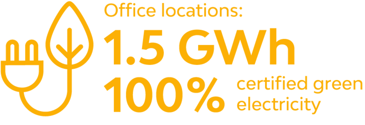Around 80% of our office locations are supplied with 100% certified green electricity.