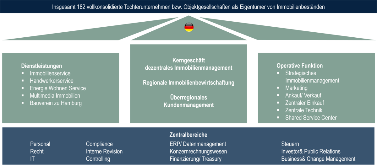 Zum einen verwalten wir unsere Immobilenbestände so effizient und nachhaltig wie möglich. Zum anderen reagieren wir schnell auf die Dynamik des Wohnungsmarktes, um immer wieder neue Renditechancen zu nutzen. Voraussetzung dafür ist eine schlanke und schlagkräftige Organisation:
